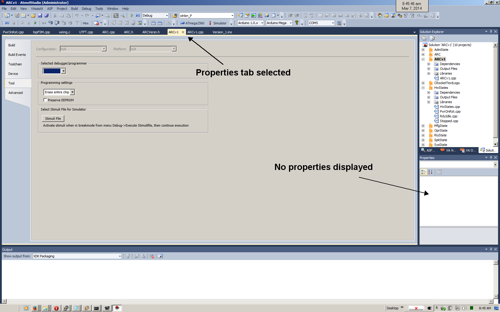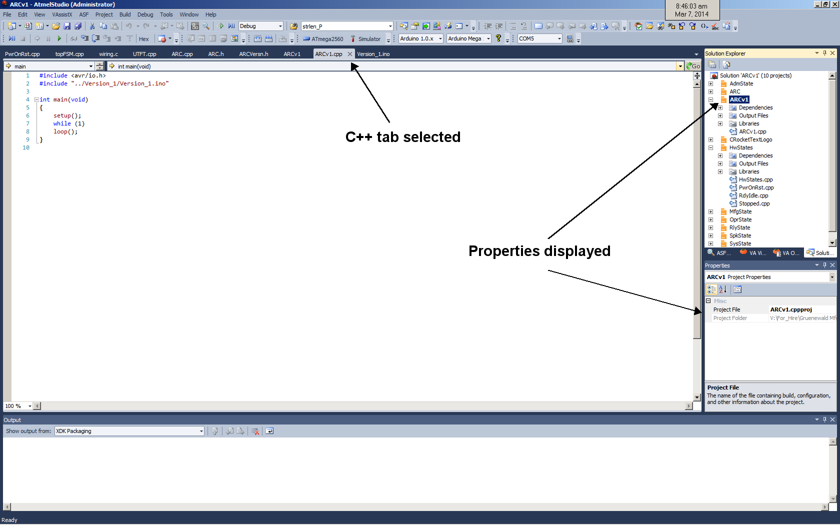 Q: Why didn't you use Visual Studio Pro instead of Atmel Studio? It's better for viewing library sources. Project>Show all sketch sources toggles your library and arduino core sources into the project. The feature doesn't yet work in atmel studio because it doesn't support virtual solution/project folders.